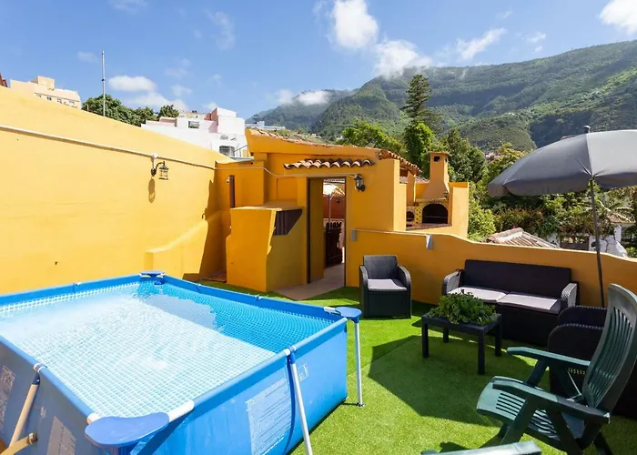 De 2-slaapkamer Canarian House With Views And Pool Los Realejos villa biedt spatherapie en BBQ-voorzieningen voor de ontspanning van de gasten en ligt binnen 6 km afstand van het Lago Martiánez. Dit vakantiehuis biedt gasten een ontspannende ervaring met een bubbelbad en warme openbare baden.